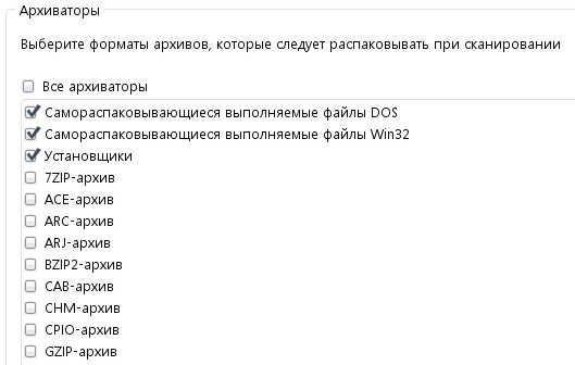 архивных файлов следует проверять при сканировании. Некоторые типы файлов