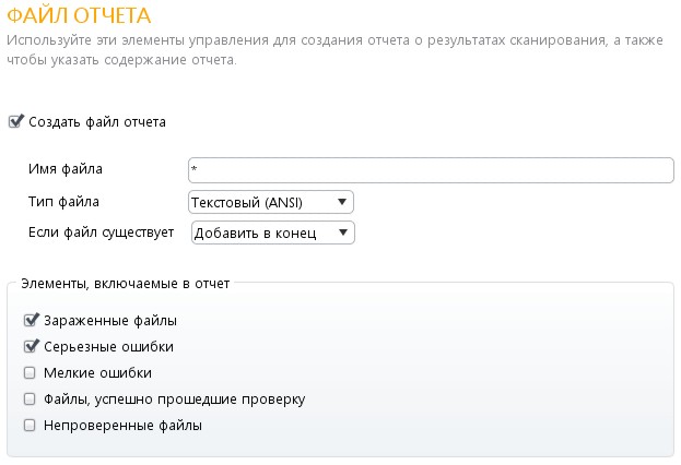 файловой системы и не действуют для других видов сканирования.