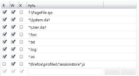 исключаемые из списка сканирования при чтении (R), записи (W) или выполнении