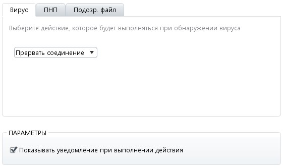 обнаружении одной из этих потенциальных угроз. Если же выбрать действие